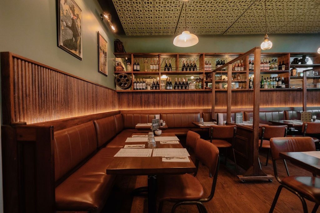 the iconic Victoria Street. The interior blends contemporary style with