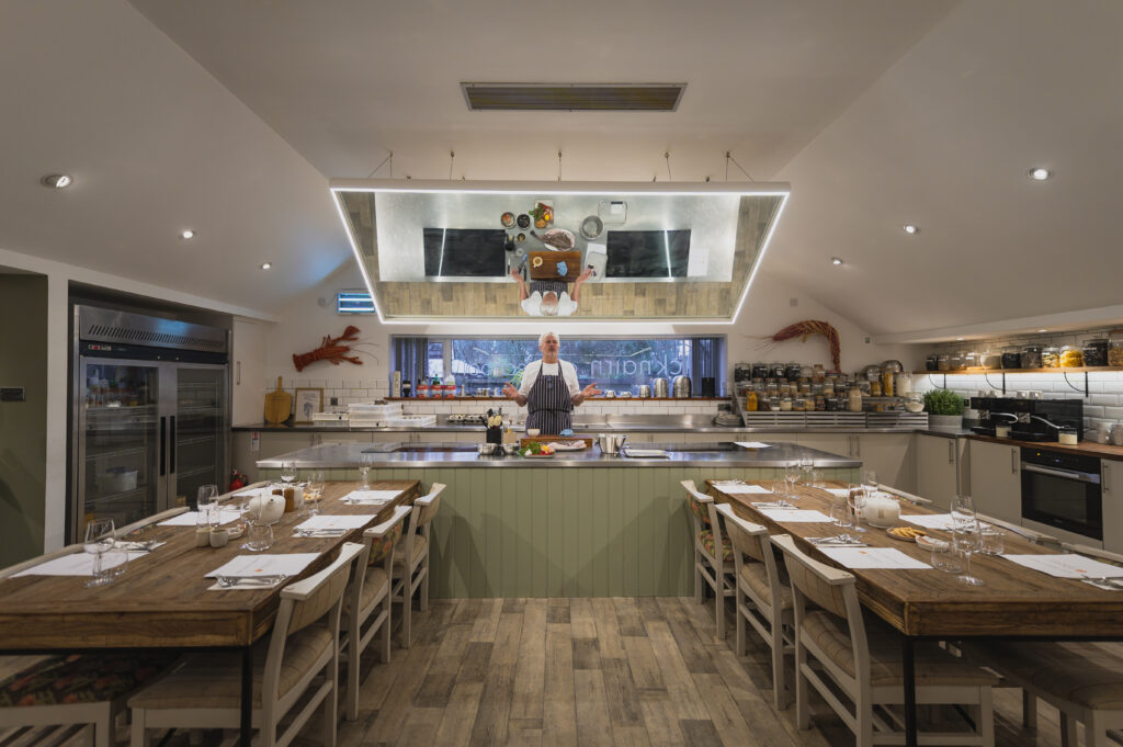 Nick Nairn Cook School was established in the year 2000.  Twenty five years on from inception and with forty years of cooking experience, Nick’s passion to inspire sharing his knowledge and love of great produce is infectious. Located at the Nairn’s family home in Port of Menteith in the heart of the Trossachs National Park, this independent family run foodie utopia comprises of a restaurant, cook school, retail experience and kitchen garden.  Classes have a maximum capacity of twelve guests per session allowing for a more informal and intimate experience.  The Cook School was refurbished in 2023 to the highest standard in partnership with Miele.
